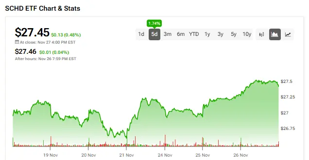 بهروزرسانی روزانه SCHD ETF، ۲۷/۱۱/۲۰۲۵