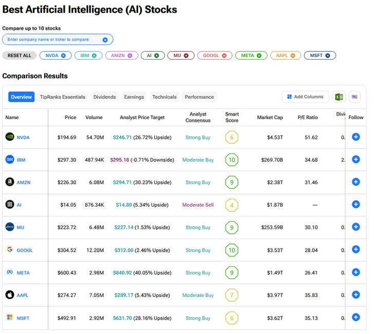ما با استفاده از ابزار مقایسه TipRanks، بهترین سهام هوش مصنوعی برای خرید در این لحظه را جمعآوری کردهایم.