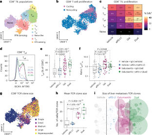 شکل ۷: Spp1 تکثیر سلول‌های CD8⁺ T را سرکوب می‌کند و به مقاومت در برابر درمان ICB منجر می‌شود