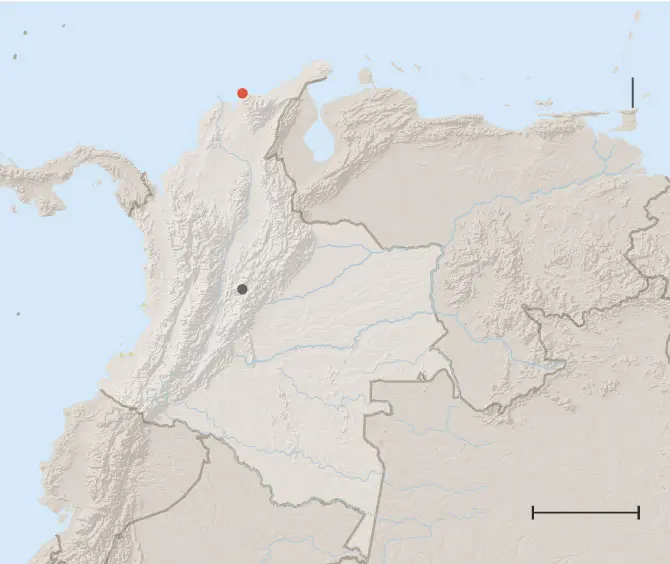 نقشهای که سانتا مارتا، کلمبیا را نشان میدهد.
